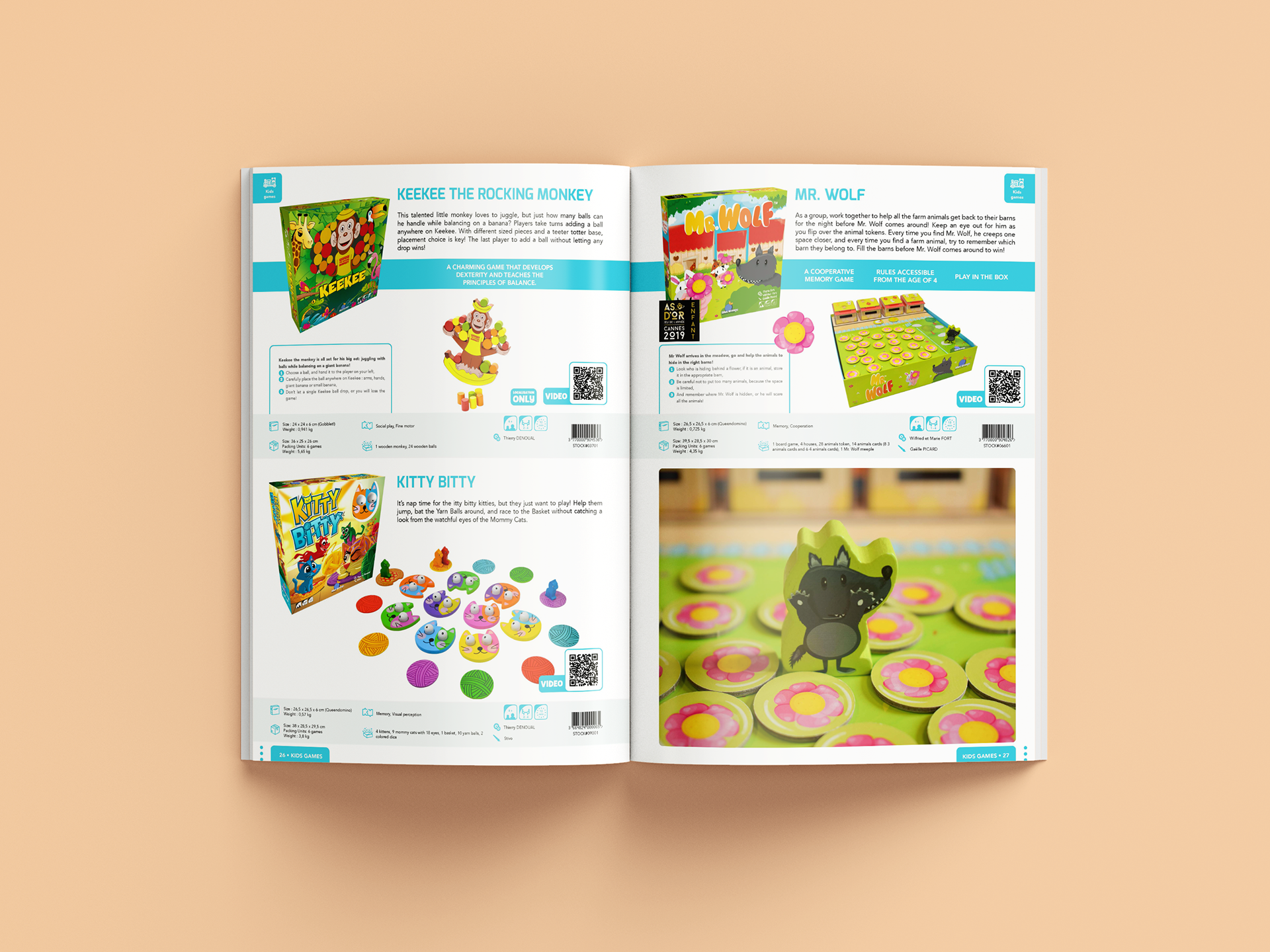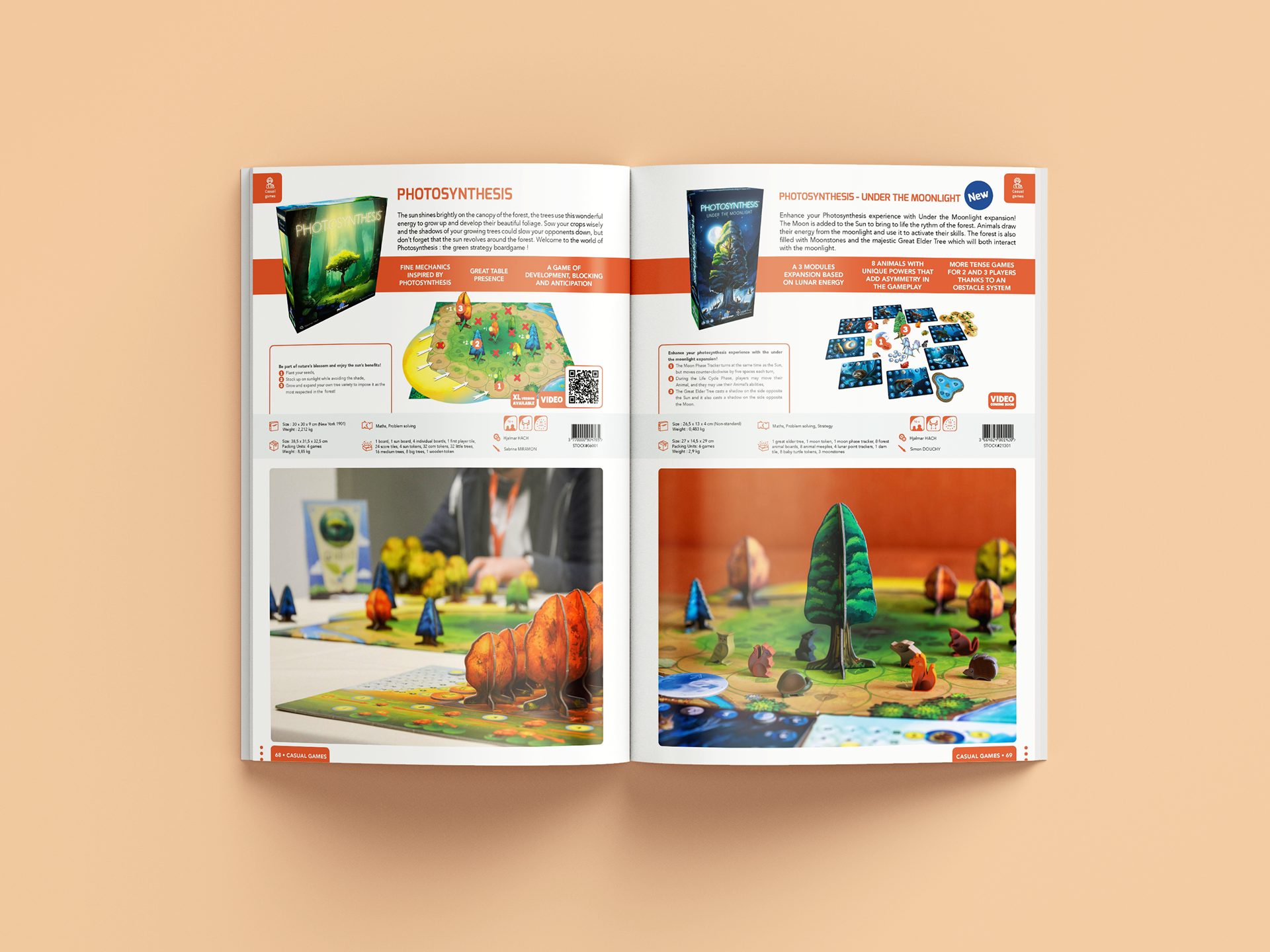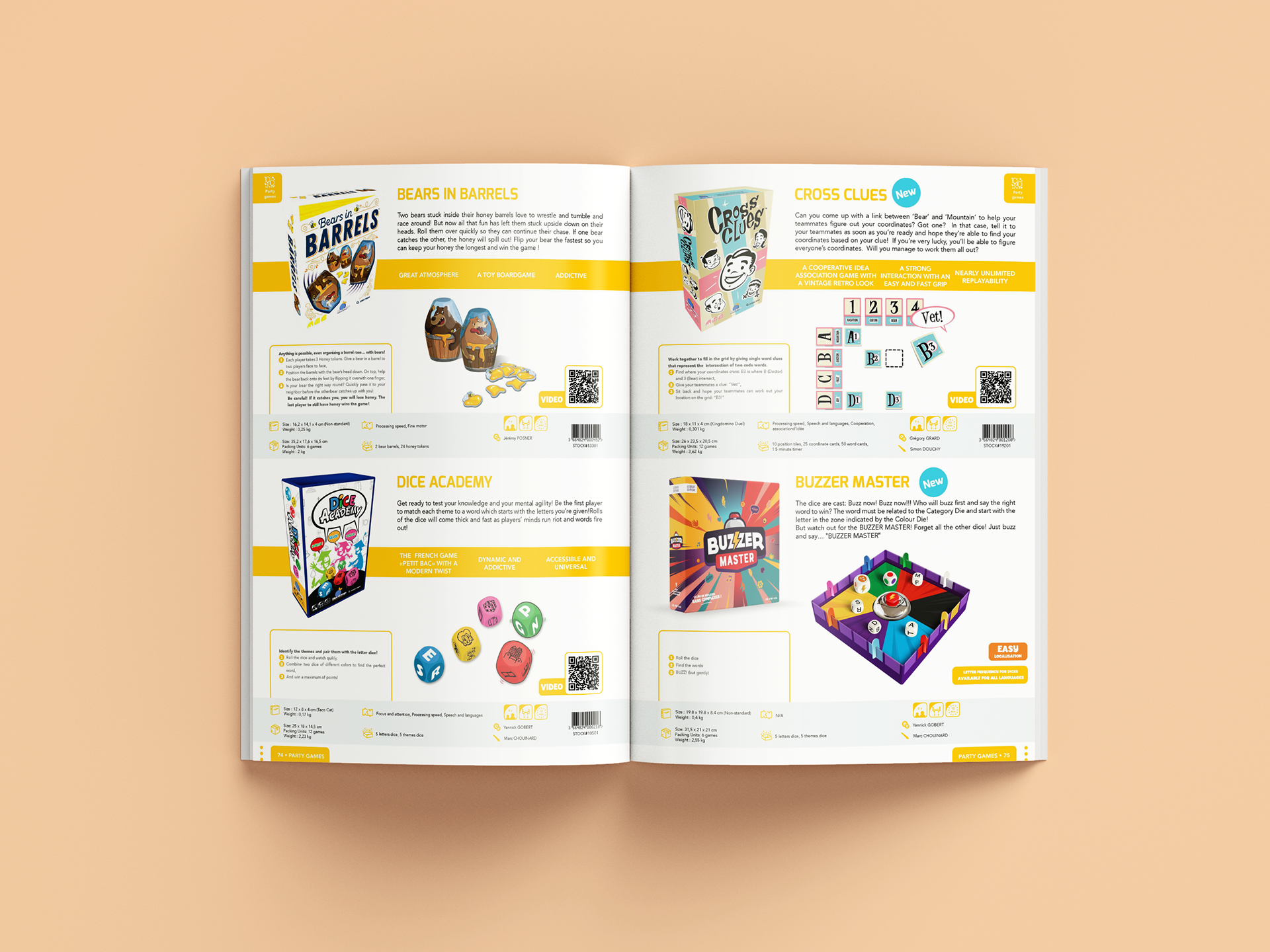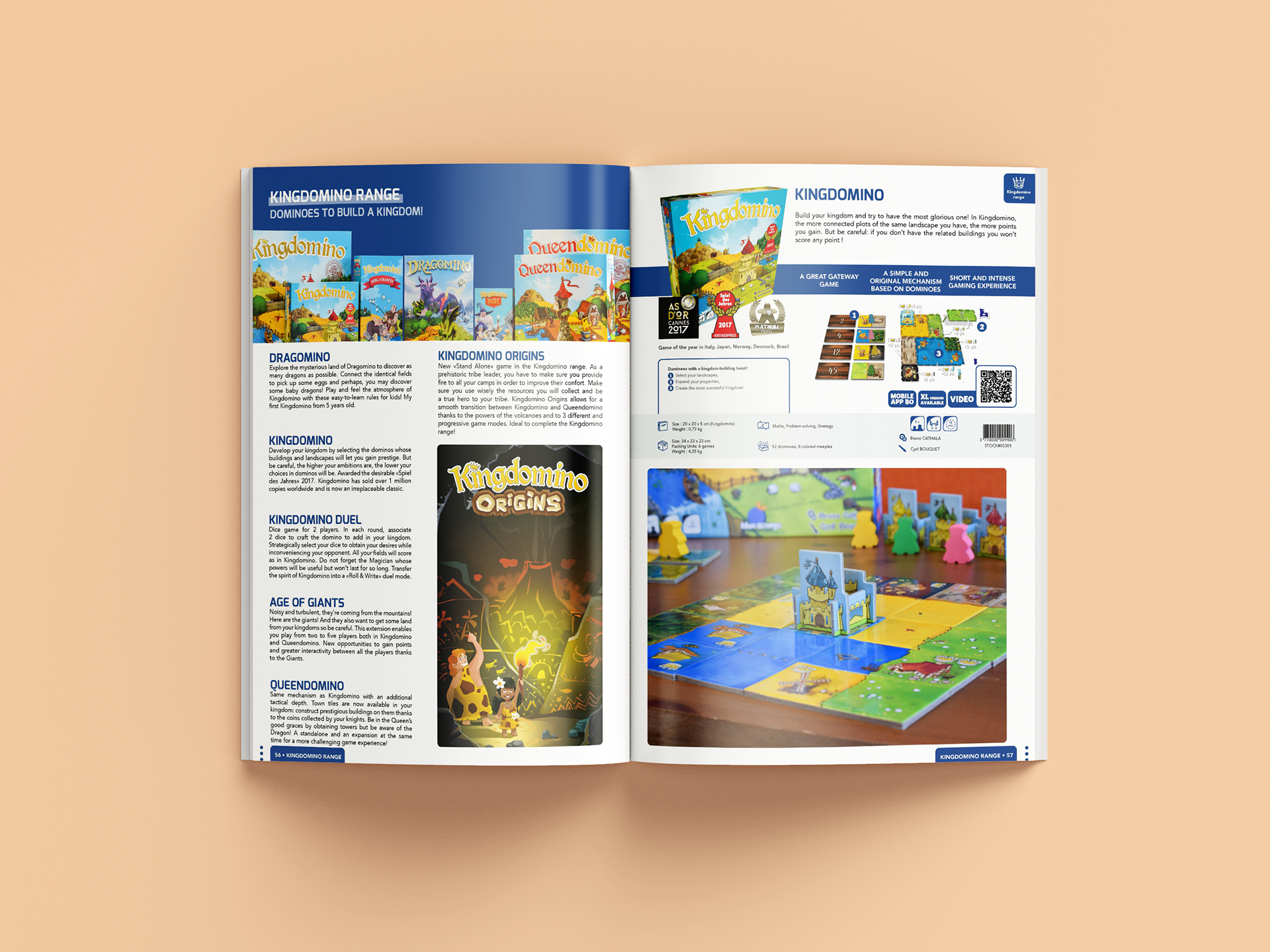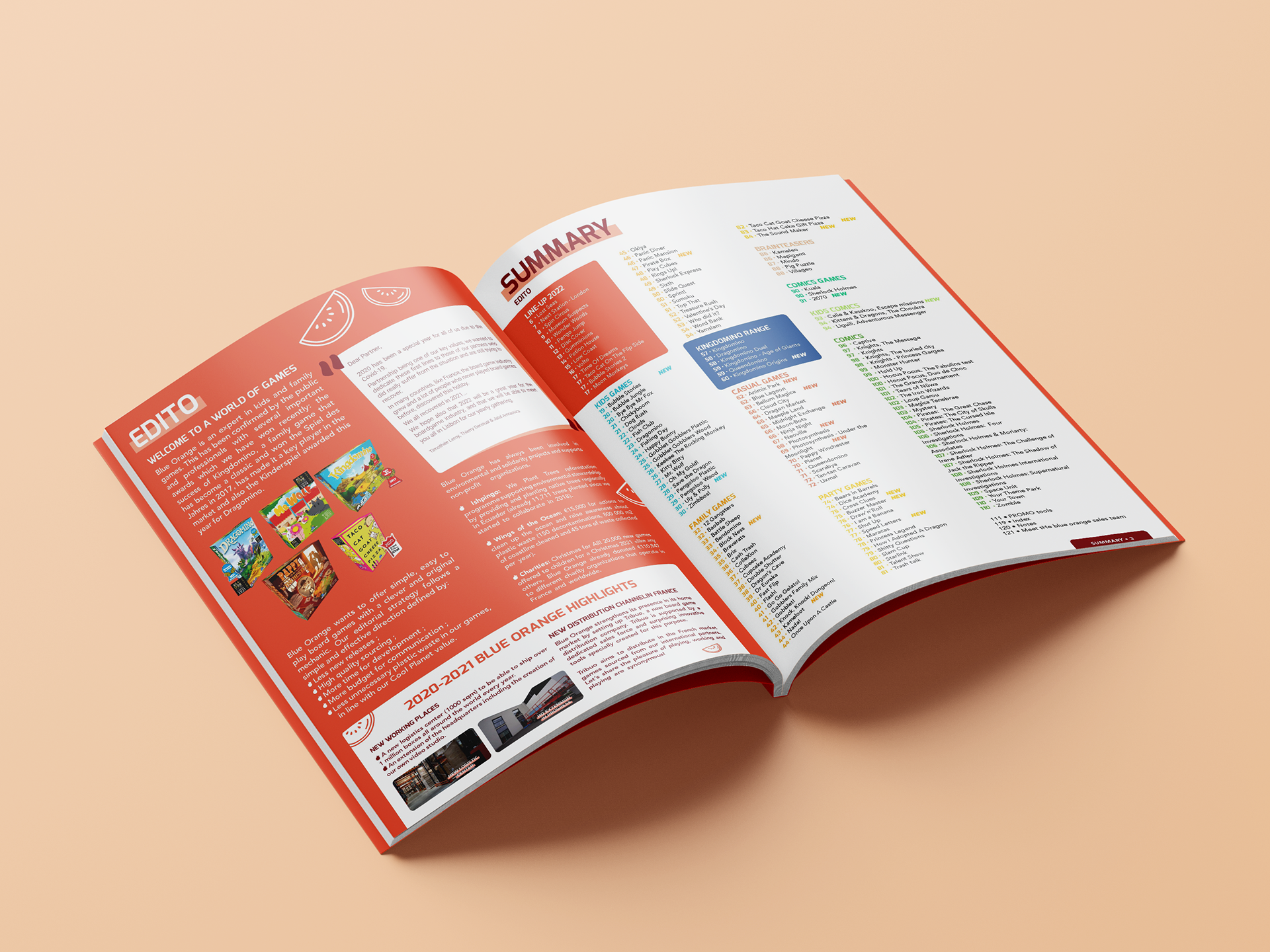 Creative and informative catalog to showcase the games by Blue Orange to their international business partners